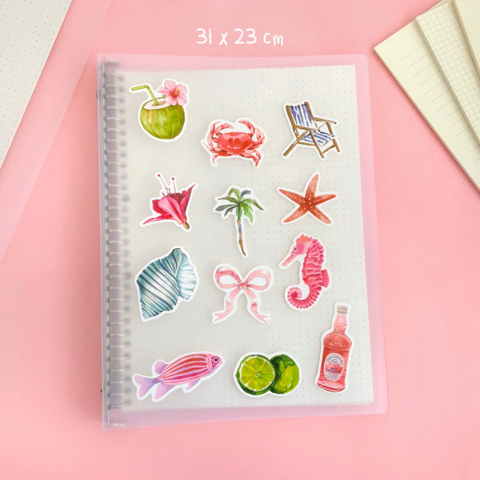 Carpeta/libreta “infinita” incluye 50 hojas, con aros metálicos para abrir y agregar más repuestos si lo deseas. Su portada es transparente para personalizarla a tu estilo.