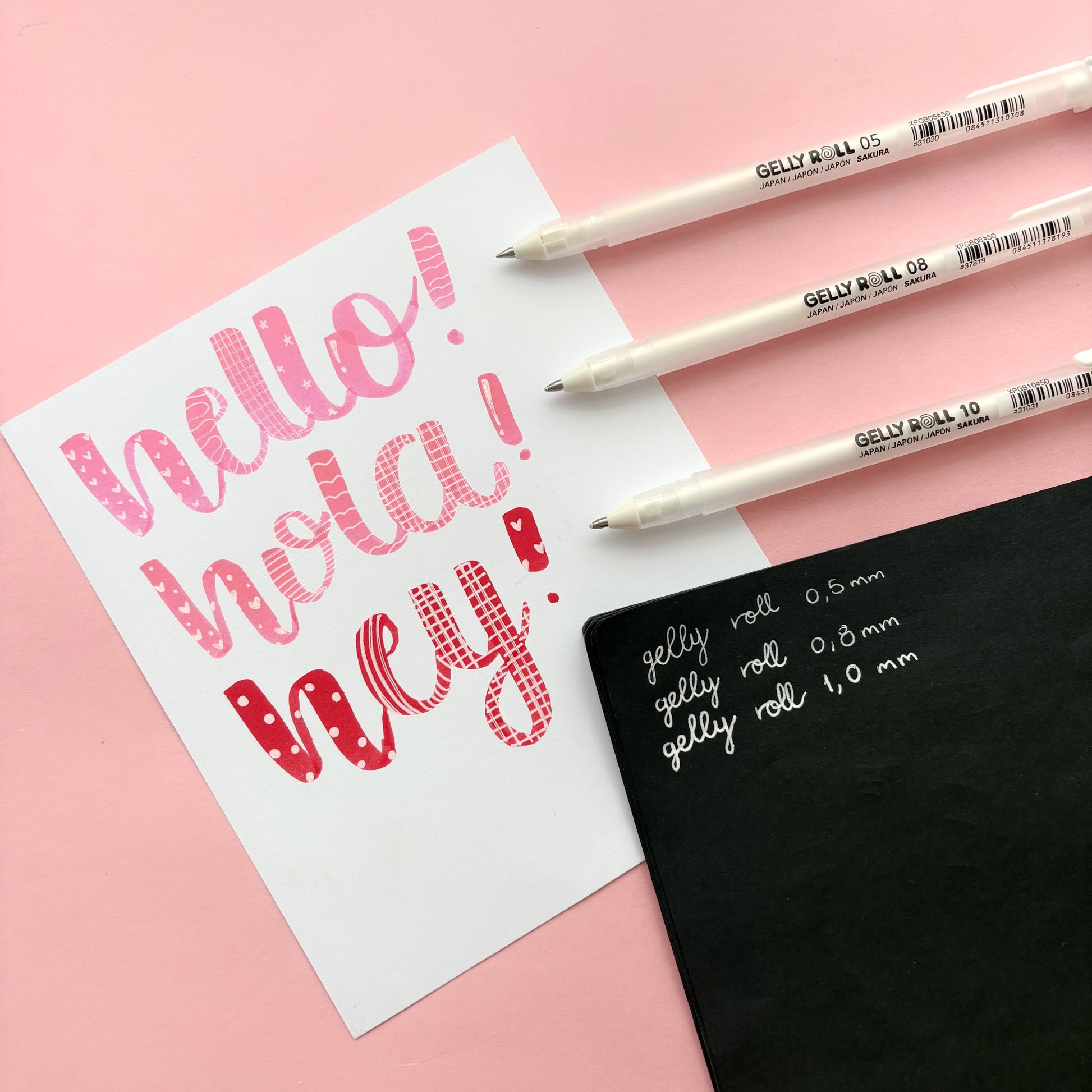 Pluma de gel de tinta blanca que destaca en papeles de color negro / oscuro.