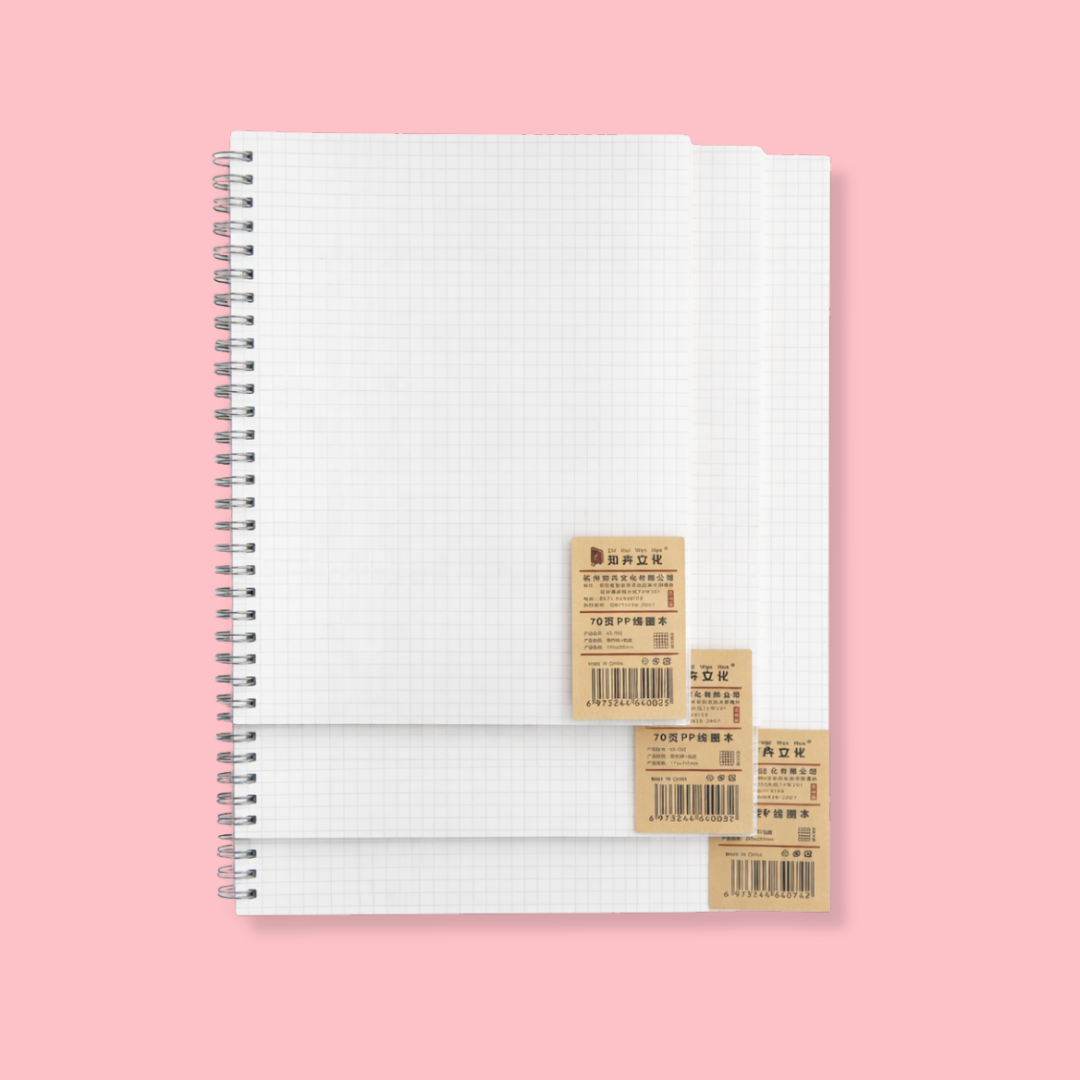 Libreta cuadriculada con 70 hojas, de pasta transparente y hojas gruesas. ¡Ideal para decorar la portada con stickers totalmente a tu gusto!